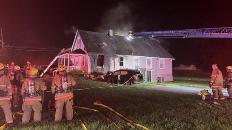 More than a dozen people displaced after car slams into home, sparking fire